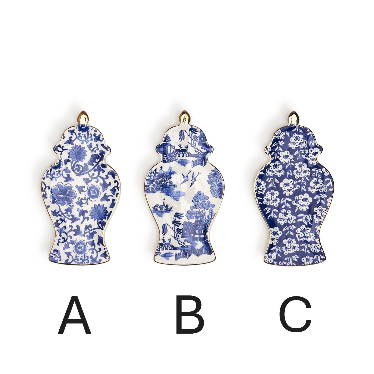These adorable trinket trays are shaped as ginger jars featuring a trendy Chinoiserie pattern. Put it in the bathroom or kitchen, while you wash your hands, do dishes or prepare a meal or leave it by the nightstand to place your rings, earrings, necklaces and watches.