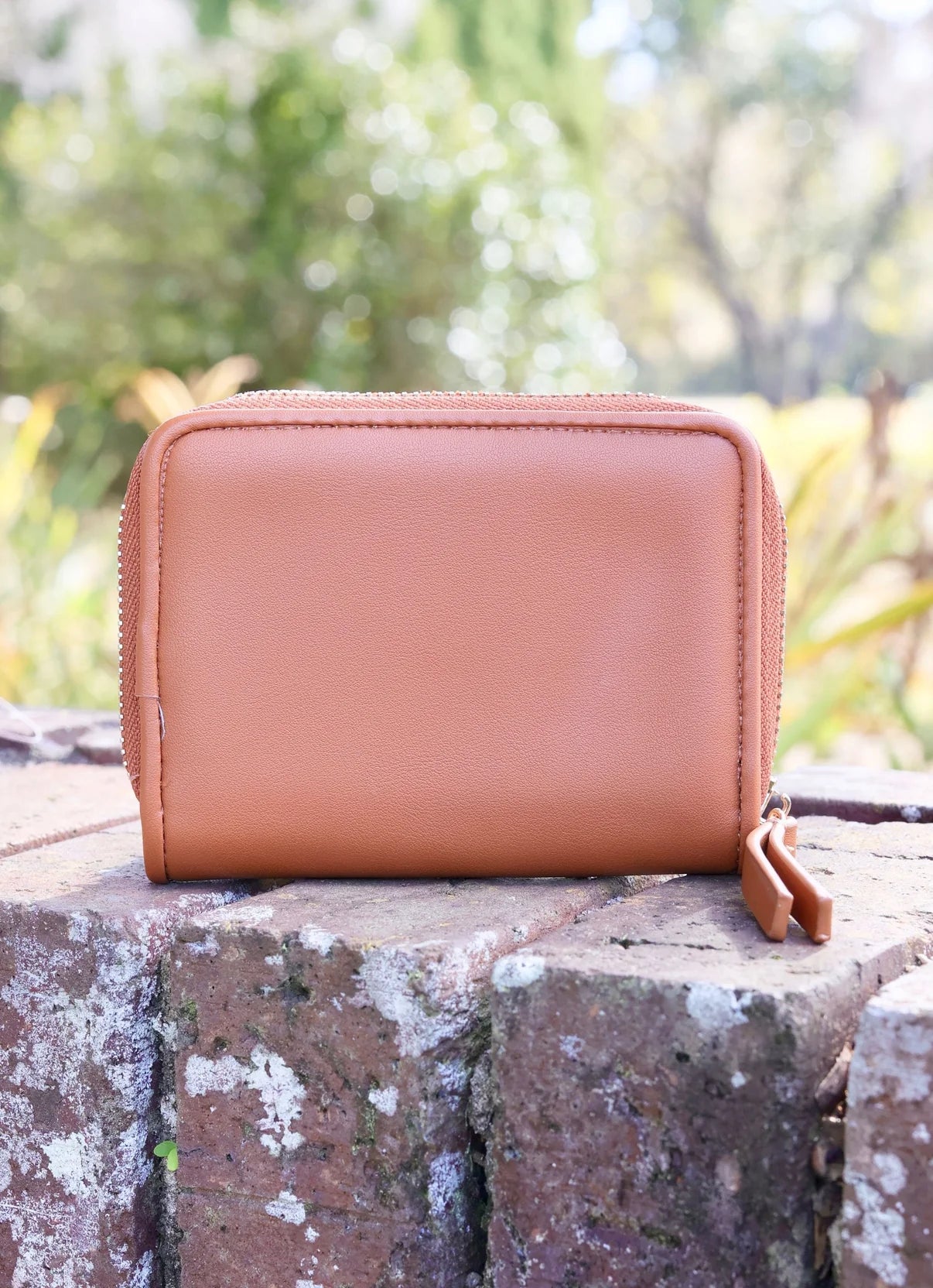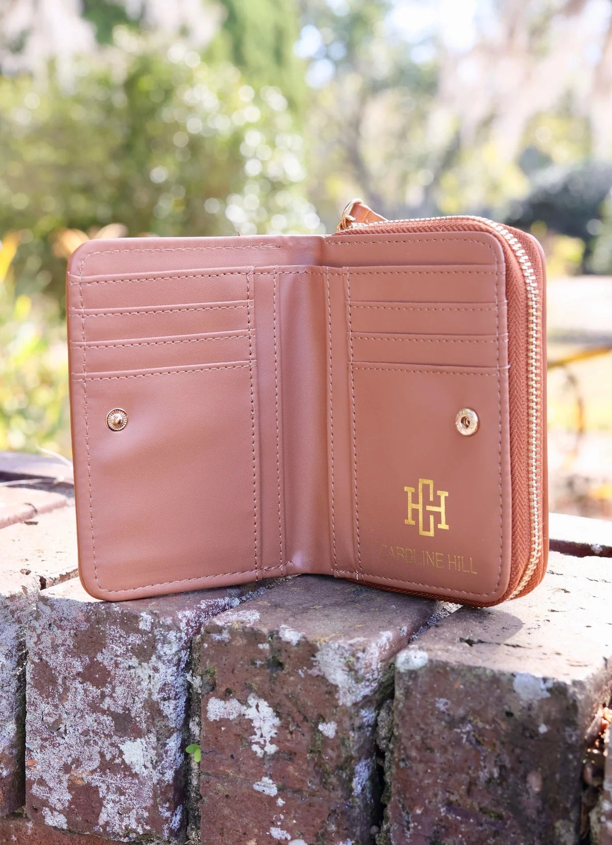 Every handbag needs a coordinating wallet, and this is the ultimate selection to keep you organized. It features the Caroline Hill logo on the magnetic front. Upon opening the wallet, you are met with a space for cash and ample room for cards. This vegan leather wallet also has a zippered back section that is perfect for securing change and other important items.