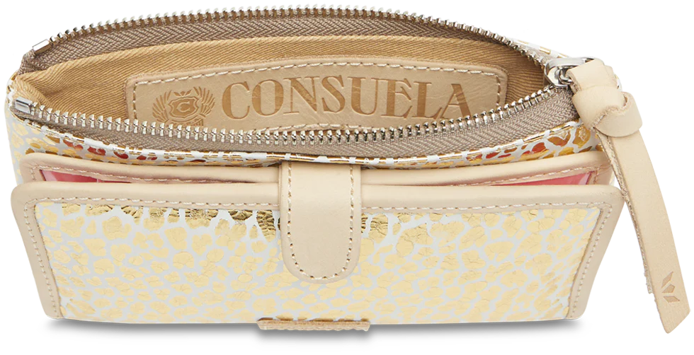Our Slim Wallet carries cards and cash without weighing you down. Open the snap closure to reveal an ID window pocket, 12 card slots, and 4 slide pocket compartments in this versatile bifold.