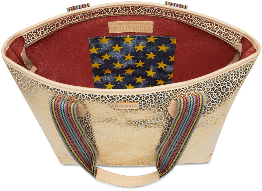 Our Zipper Tote keeps essentials secure with a roomy interior and top zipper. Crafted with comfortable woven handles, this bag has plenty of storage space and functional interior pockets for all things big and small. The best part? It’s TSA Carry-On Compatible!