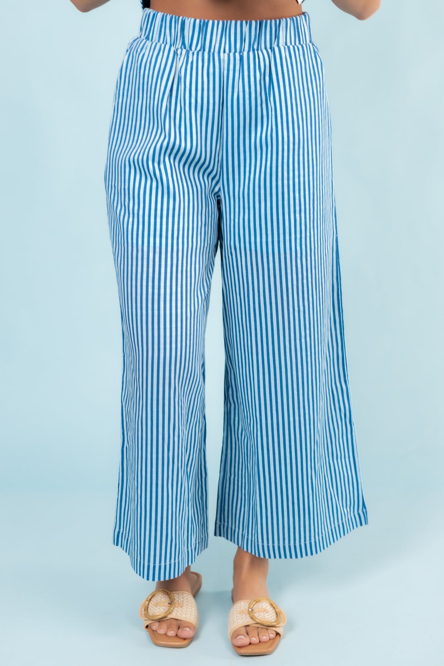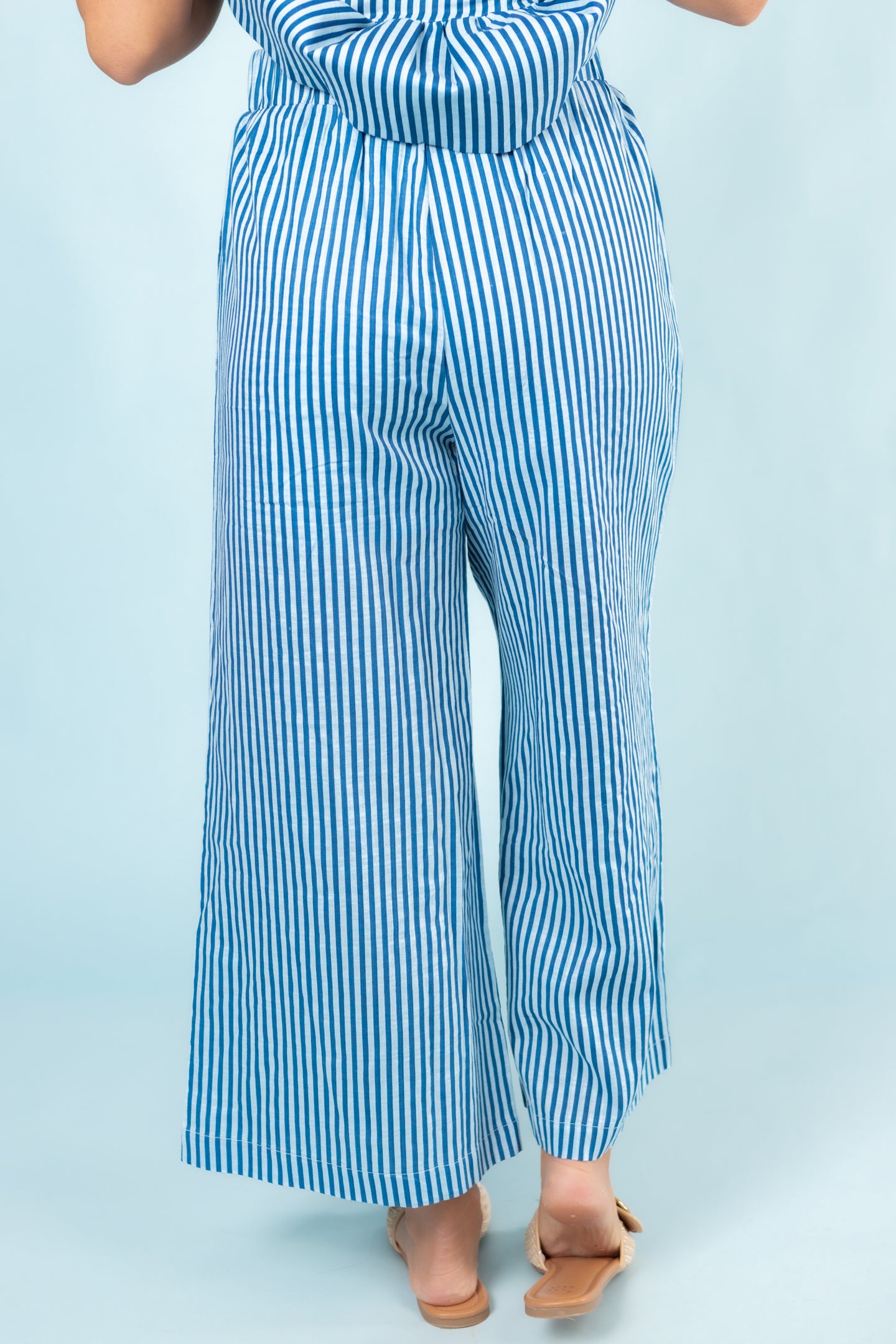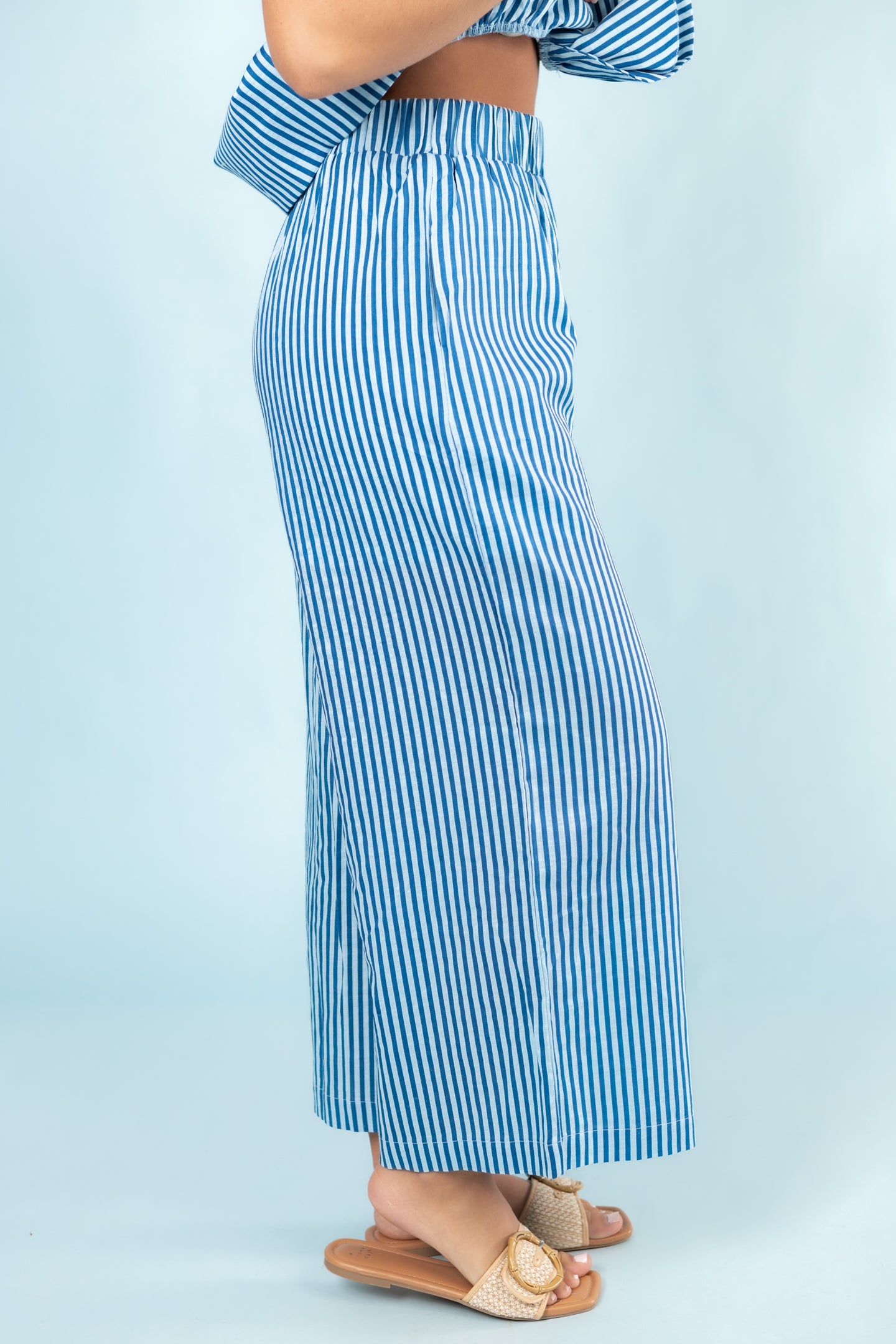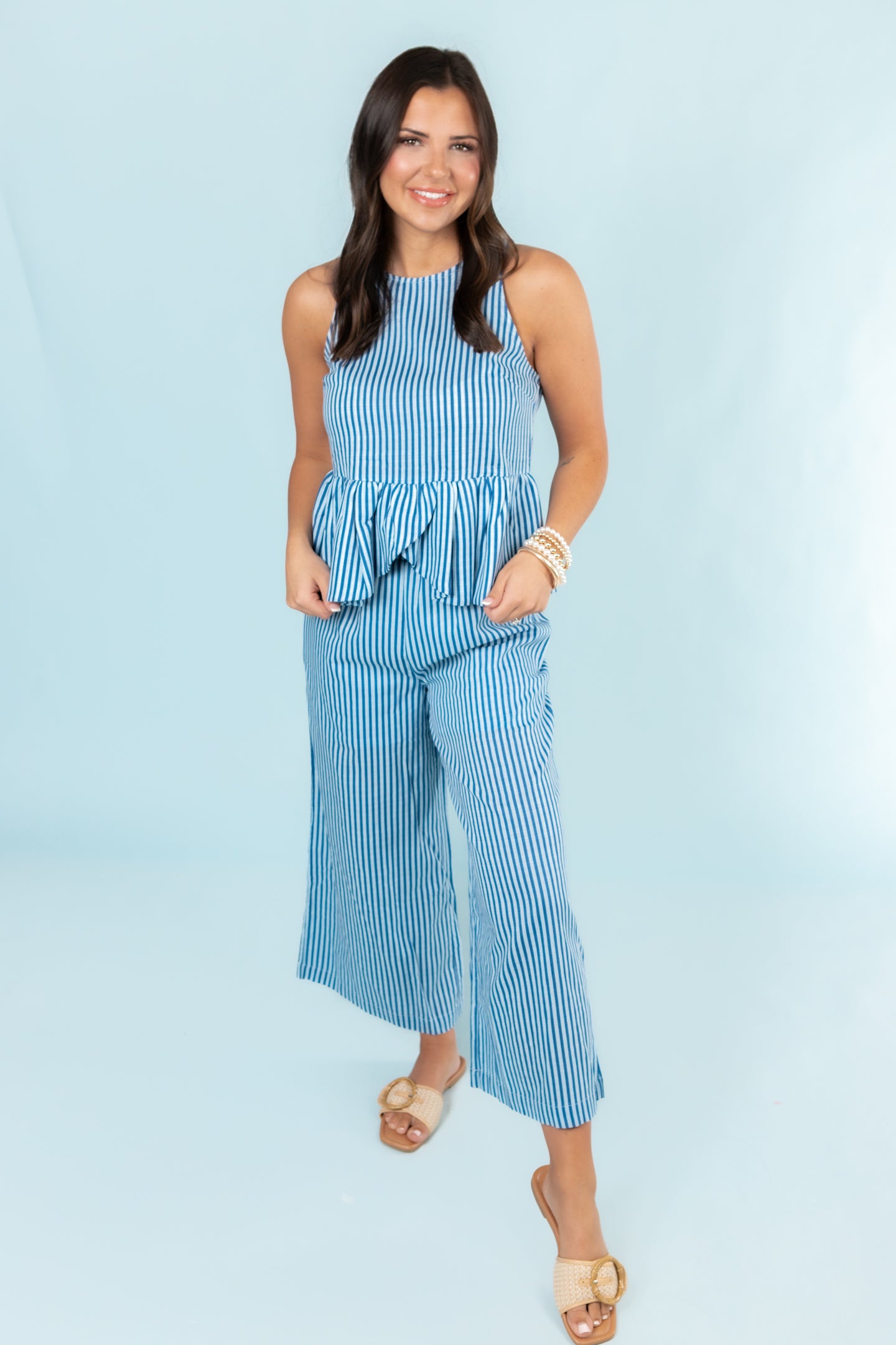 Introducing the English Factory Striped Set - the perfect combination of comfort and style! These stripe pants feature an elastic waistband for a personalized fit, while the peplum stripe top adds a touch of sophistication. Dress it up or down for any occasion. Elevate your wardrobe with this must-have set!