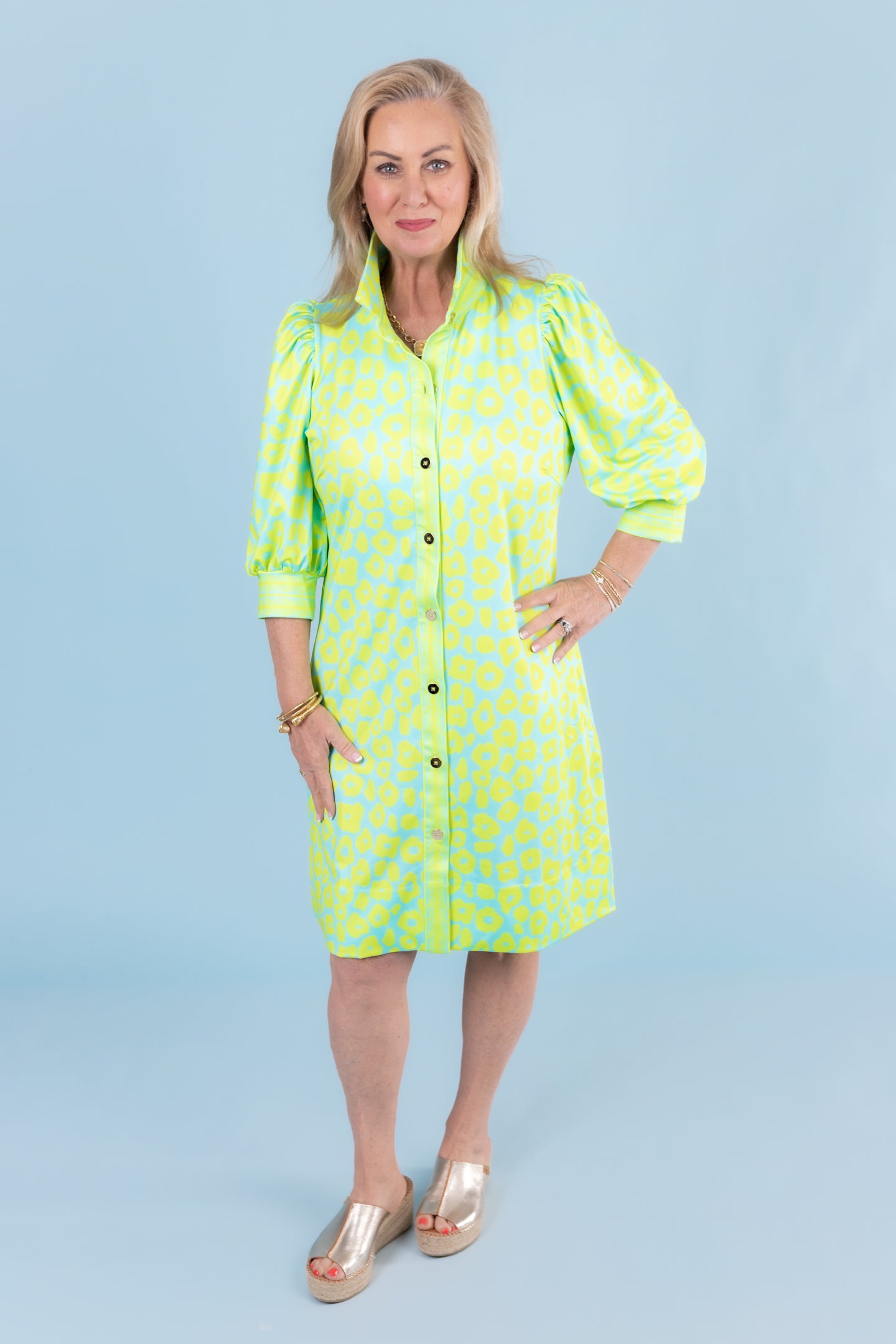 Introducing the Gretchen Scott Swagger Dress - Me Jane! With a total length of 36 inches, puff sleeves with coordinating fabric cuffs, and functional shiny brass buttons in the front, this dress exudes confidence and style. It also features an optional 8-inch wide belt, 80 inches long, and side seam pockets, making it functional and fashionable. With coordinating fabric on the inside back panel and a 4-inch hand hem, this dress is a must-have for any fashion-forward individual. Get ready to turn heads and make a statement with this stunning dress!