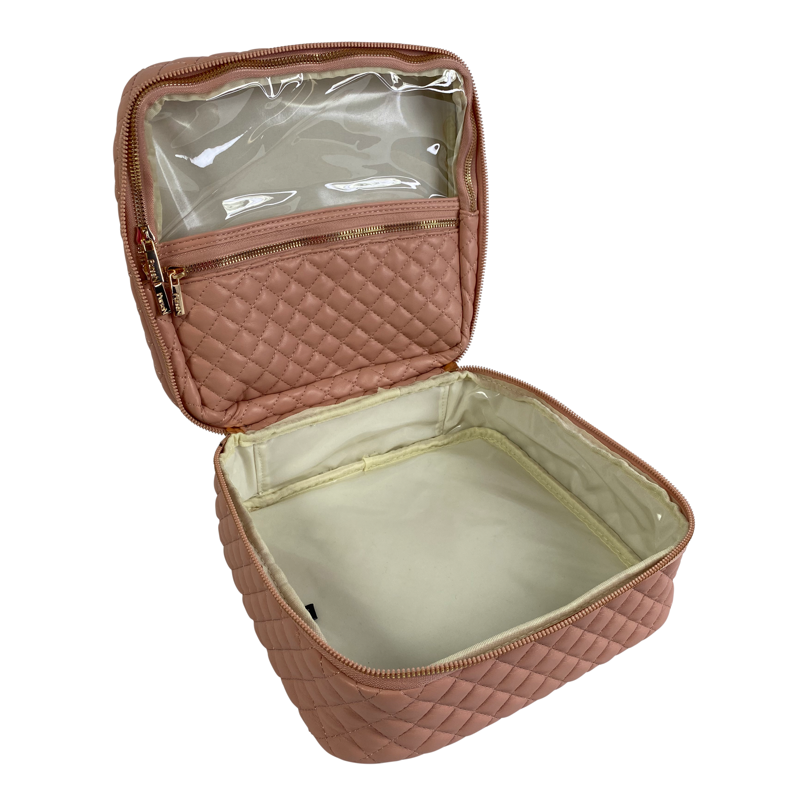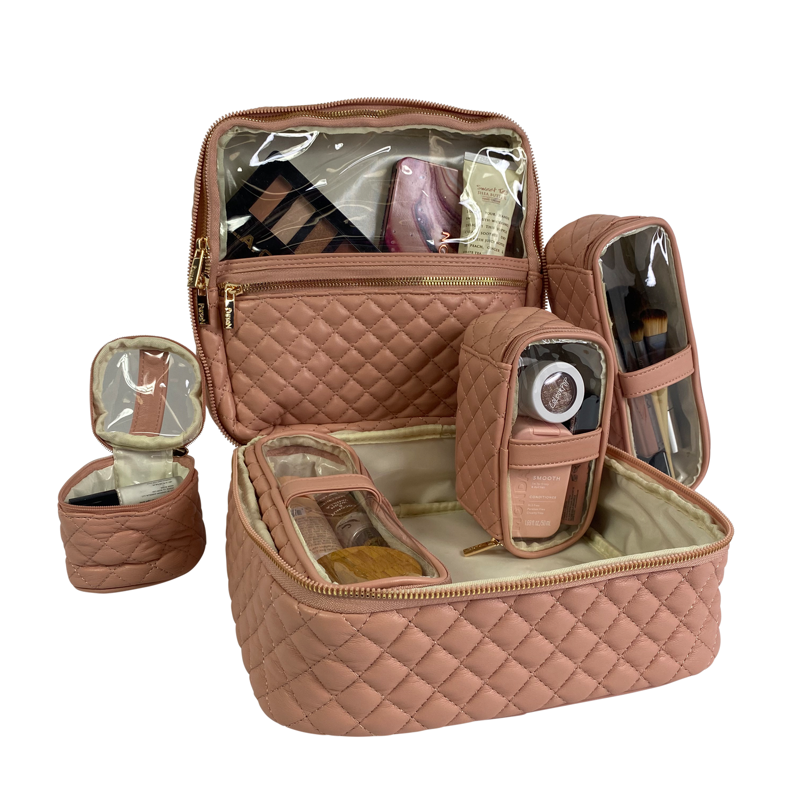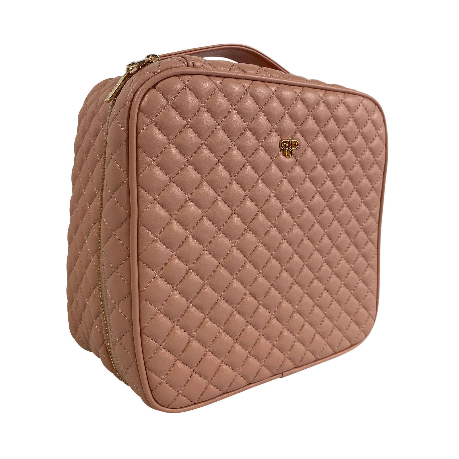 Our Pearl Quilted collection is a bridal favorite! The Mini Diva Makeup Case is a medium makeup case that is the ultimate organizer perfect for divas & jet setters with a lot to carry when they travel. This travel case has 4 removable cases idea for organizing eyeshadows, foundations, brushes, mascara, lipstick, powders & so much more.