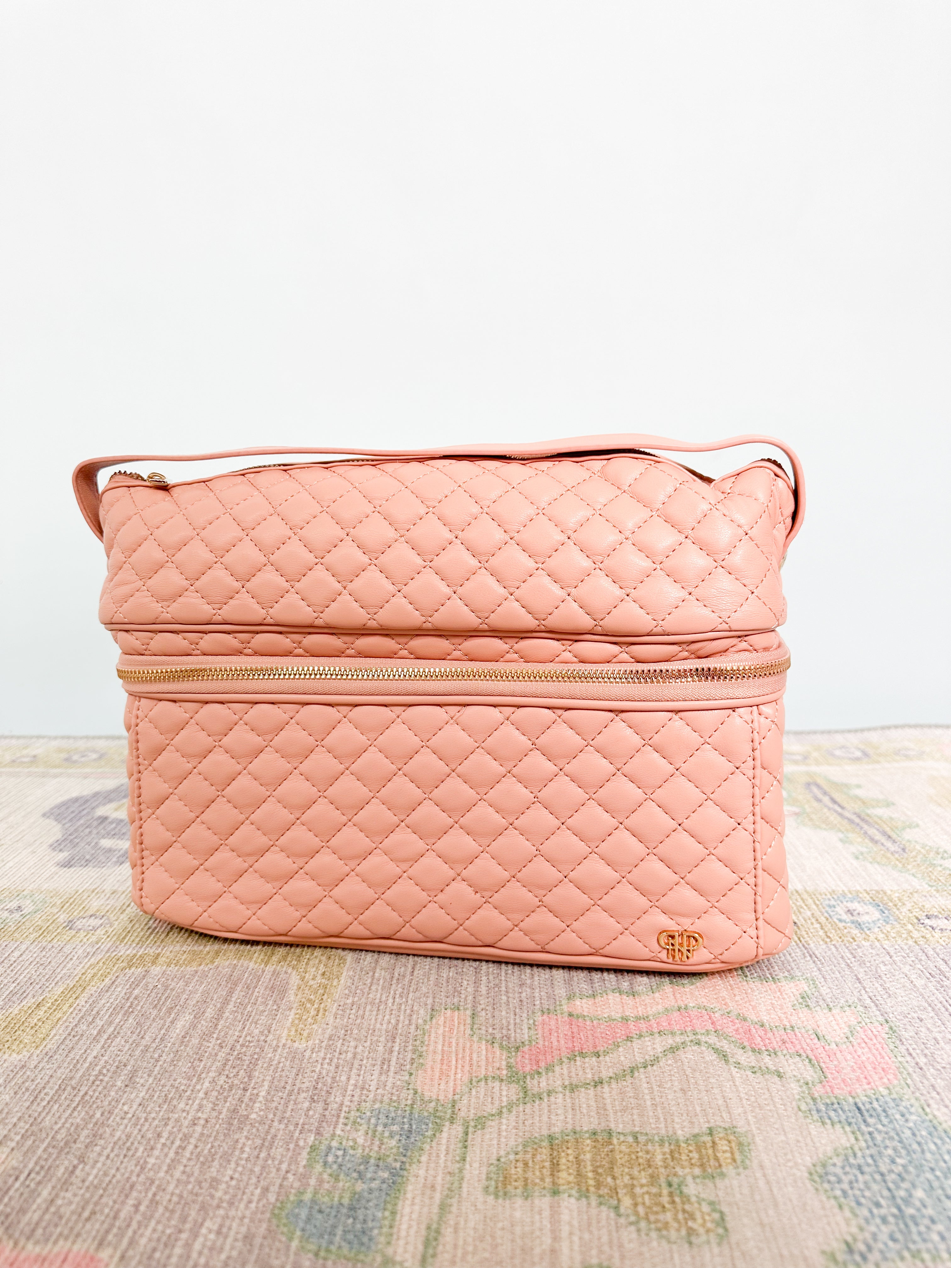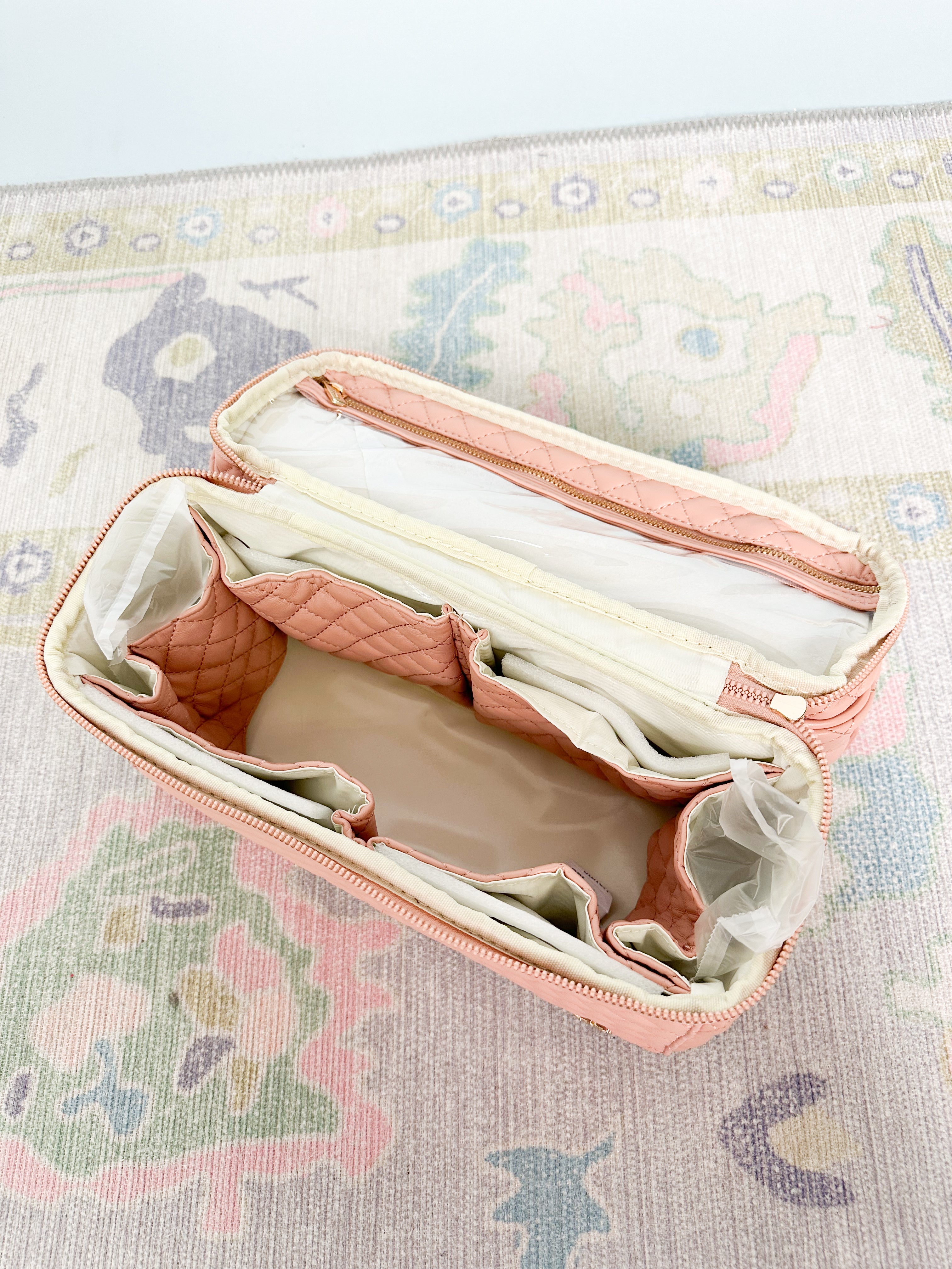 The Glimmer Leopard Stylist Bag is designed for hot styling tools and keeping them separate from your other beauty products. The top compartment features a heat resistant liner so you don't have to wait to put away your hot tools. The bottom compartment is ideal for larger and heavier items such as bottles, jars, hairbrushes and more. The two combine to make the ultimate toiletry case.