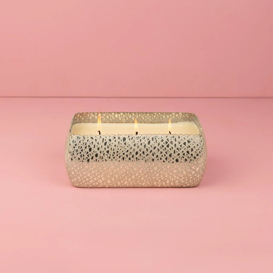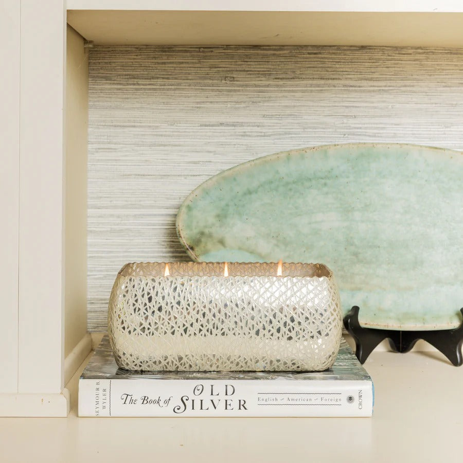 Add a touch of brilliance with Sweet Grace Candle #069. With its rounded rectangle shape and striking silver mosaic finish, this candle catches and reflects the light for a shimmering effect that elevates any room. Filled with 39.5 oz of our exclusive soy-blend wax and three wicks for an even burn, it offers up to 93 hours of the iconic Sweet Grace fragrance you love.
