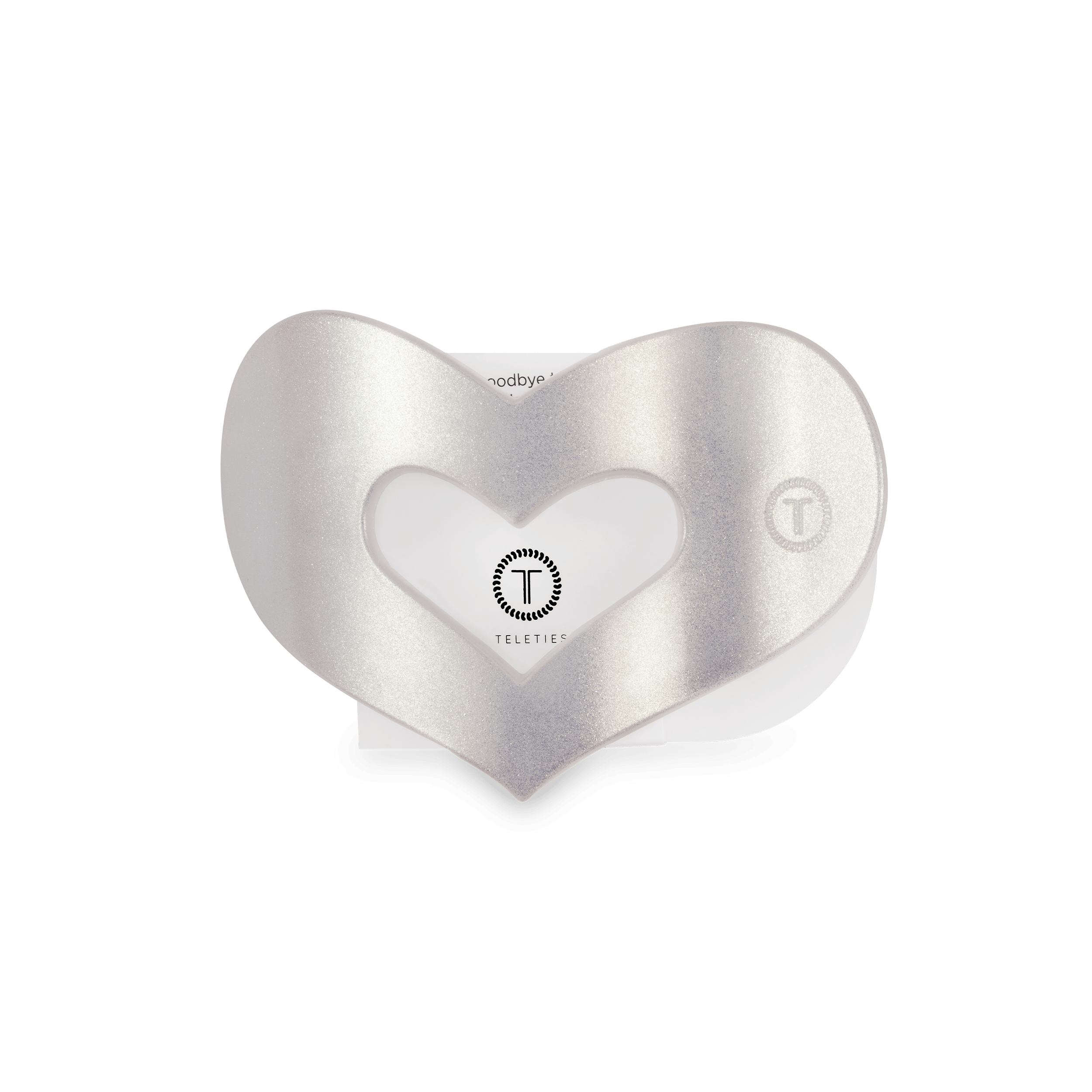 Lay flat and relax with the new TELETIES Mother of Pearl Heart Clip. This hair clip is designed to allow you to lay back flat, do yoga, or sit comfortably in a seat with a headrest, and it is made with the same material that is nearly unbreakable.