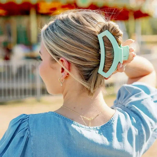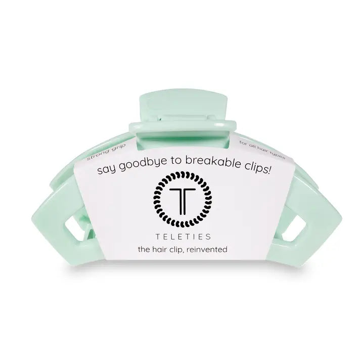 Our Open Hair Clip offers the same incredible advantages as our Classic Claw Clip, but with a unique open-style design that allows your hair to show through. Say goodbye to breakable clips! We have perfected the hair tie and now have re-invented the hair clip. Each clip has bendable teeth that take back to shape, they work on all hair types and have a strong hold. Hold your hair and enhance your style with the new TELETIES Clip! Large clips are great for thick hair.