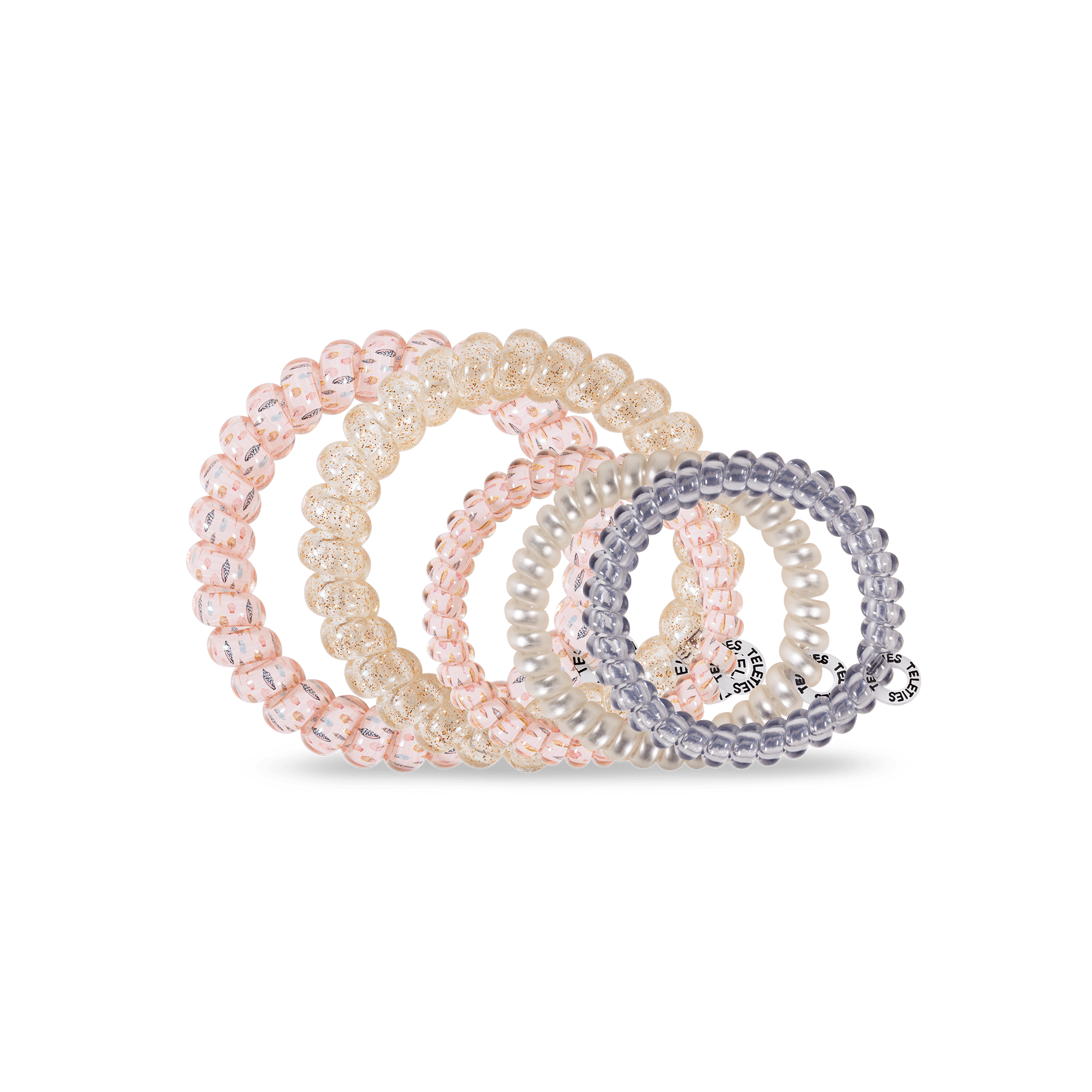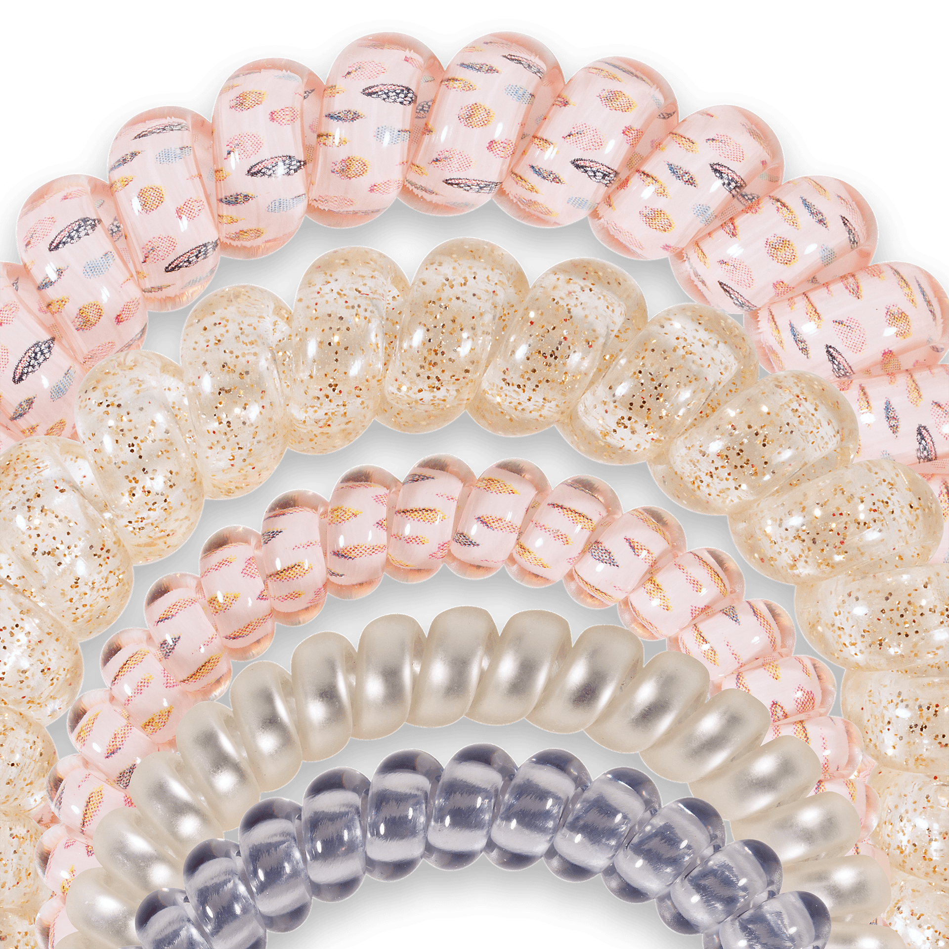 Treasure Hunt Mixed Hair Ties in Pink offer a strong grip without damage, doubling as a chic wrist accessory when not in use. Your new favorite hair essentials all year round.