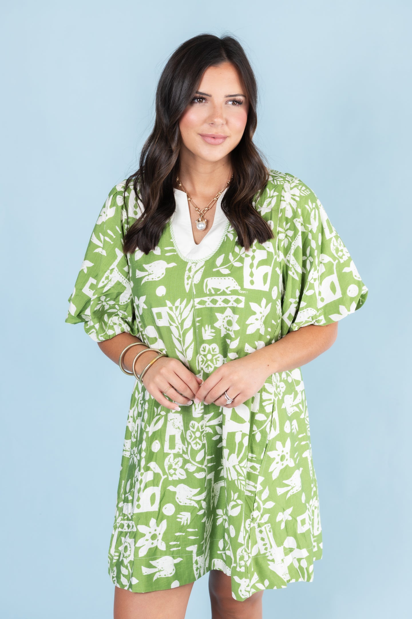 Step into effortless style with the Umgee Abstract Print Puff Sleeve Tunic Dress. Designed with a charming puff sleeves, this lined dress falls above the knee for a chic, comfortable fit. The eye-catching abstract print adds a contemporary touch, making it perfect for day-to-night wear. Elevate your look with this versatile and stylish tunic dress.