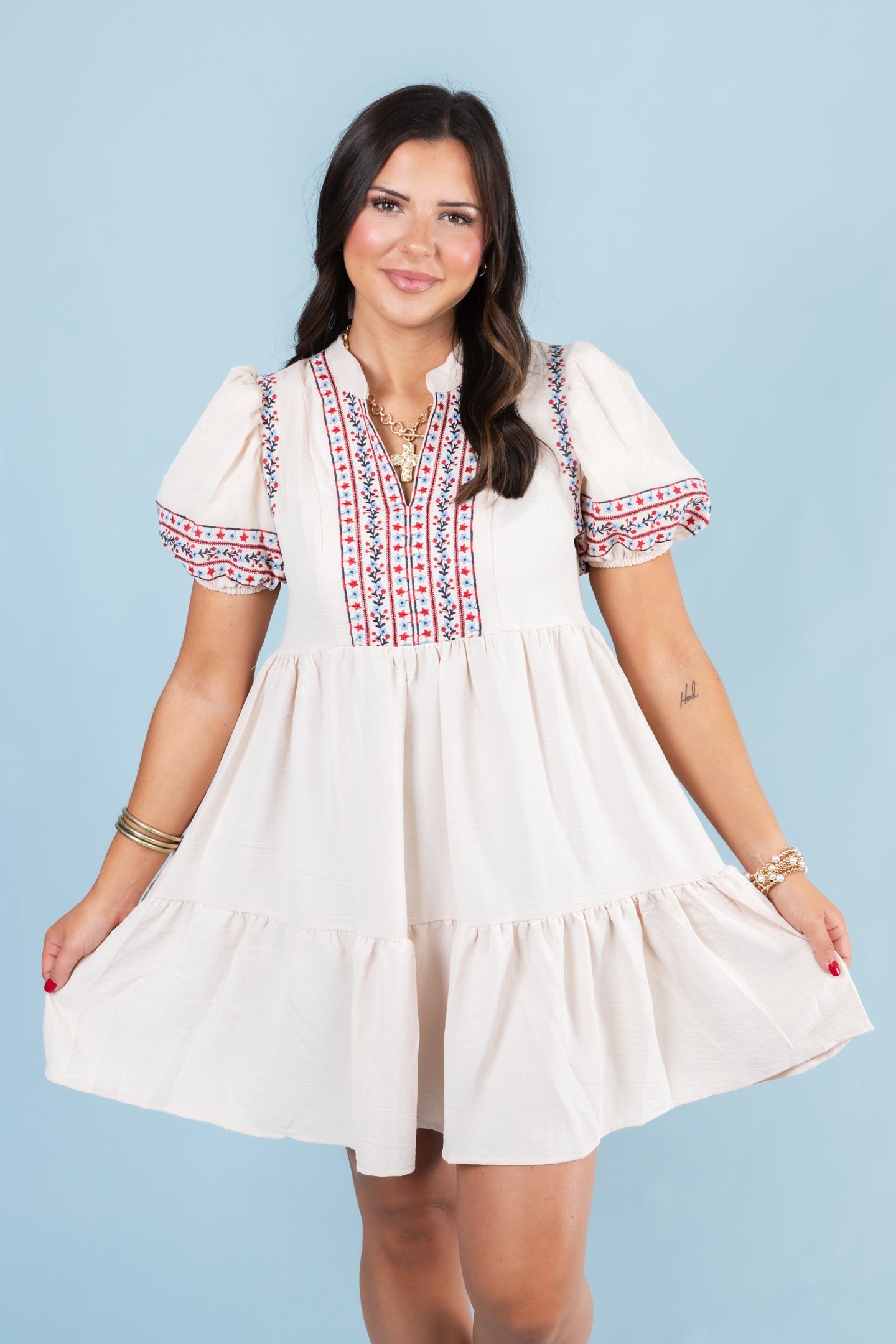 Elevate your style with the Babydoll Mini Dress by Umgee. Featuring delicate embroidery and charming puff sleeves, this dress offers a flattering V-neckline and a playful mini length. Perfect for making a statement at any event, it combines comfort and feminine flair effortlessly.
