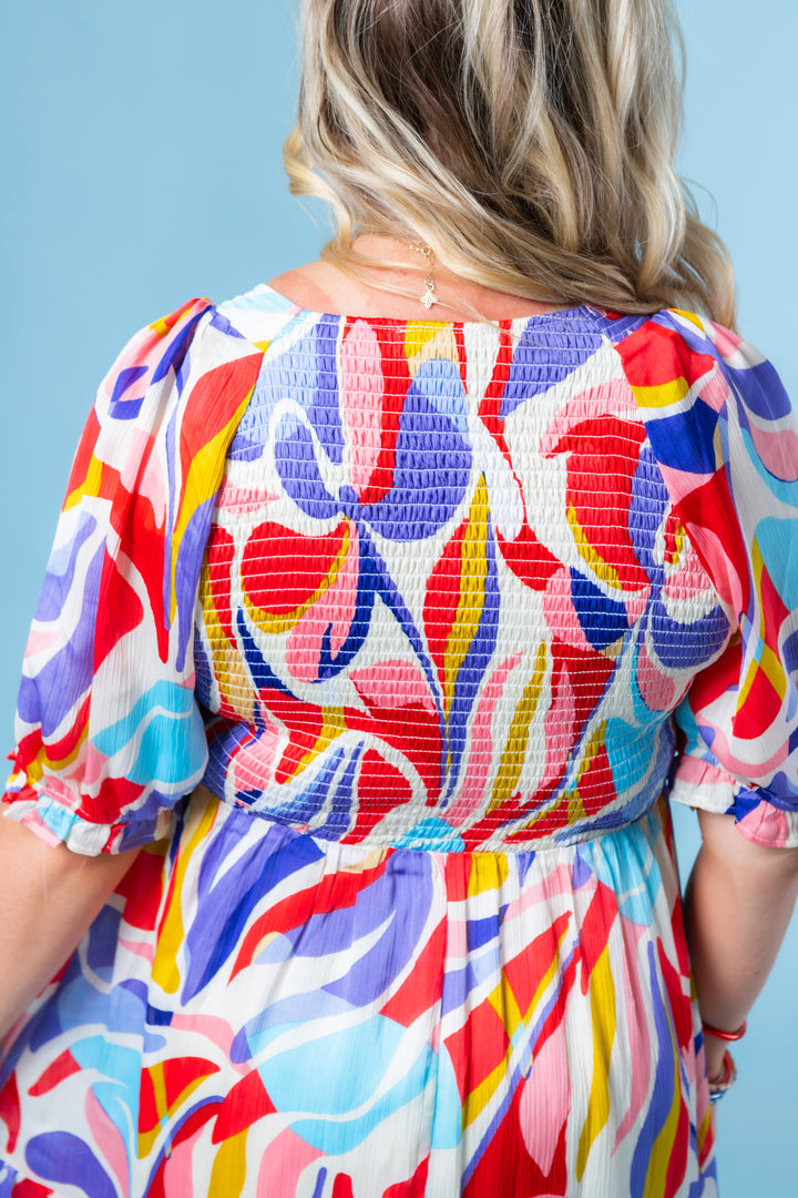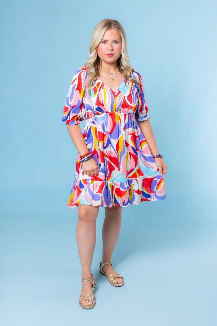 The Groovy Mini Dress is a must-have for any fashion-forward individual. Featuring a satin print, this baby doll dress is perfect for any occasion. The smocked bodice provides a flattering fit while the short puffed sleeves and ruffled cuffs add a touch of elegance. The dress is non-sheer and lightweight, making it comfortable to wear all day long. Don't miss the chance to add this stylish piece to your wardrobe!