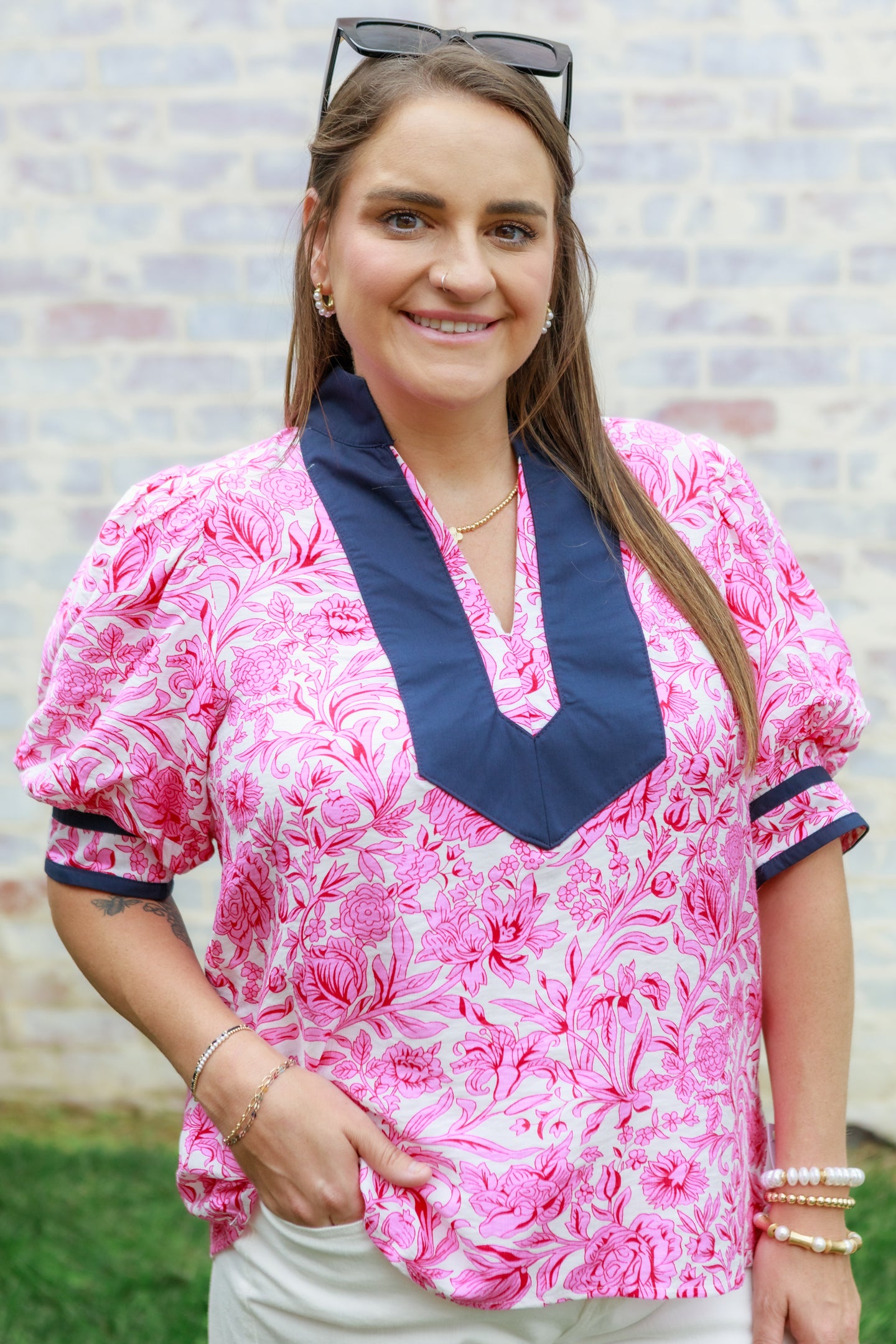 Introducing the Grayson Blouse - the perfect blend of chic and comfort. This floral print top features voluminous puff sleeves and a caftan-inspired high neck band for a trendy touch. You'll love the contrast accents and lightweight woven fabric that provide unbeatable style and breathability.
