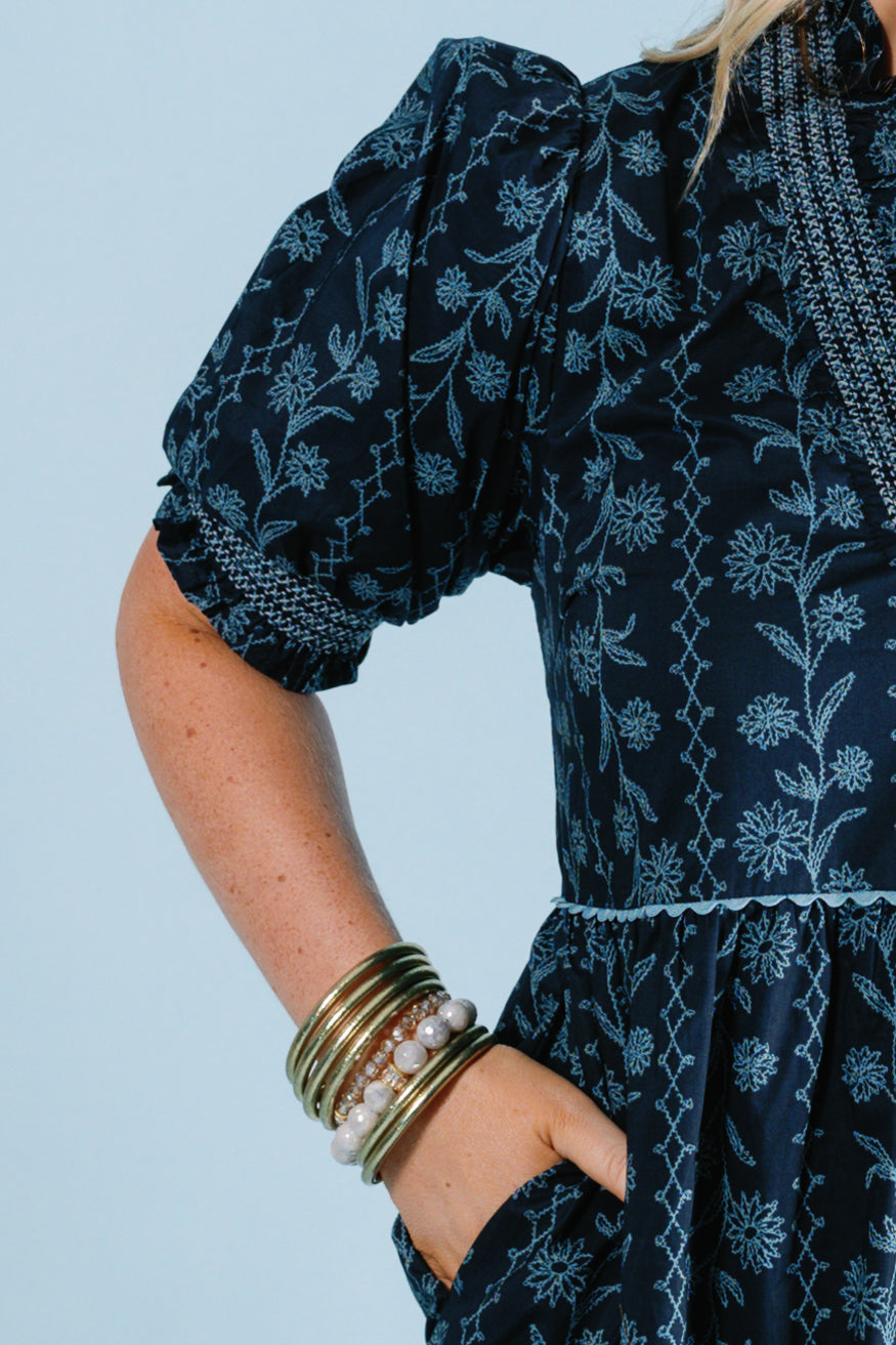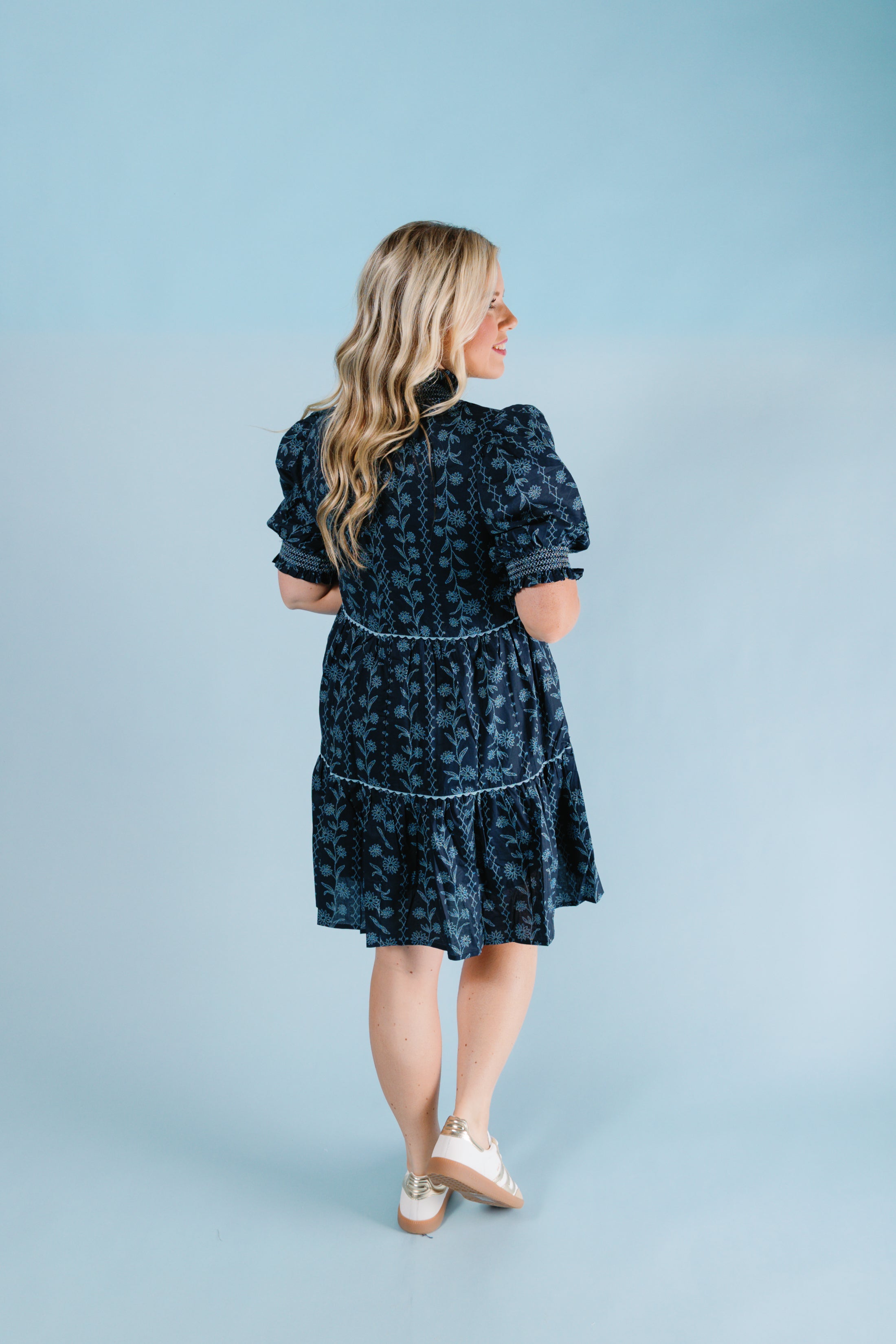 Get ready to make a statement with The Midnight Blooms Mini Dress. The bold floral print, contrast stitching, and playful ruffled details add a touch of whimsy to this v-neck dress. Complete with pockets and a lightweight lining, this dress is both functional and stylish.