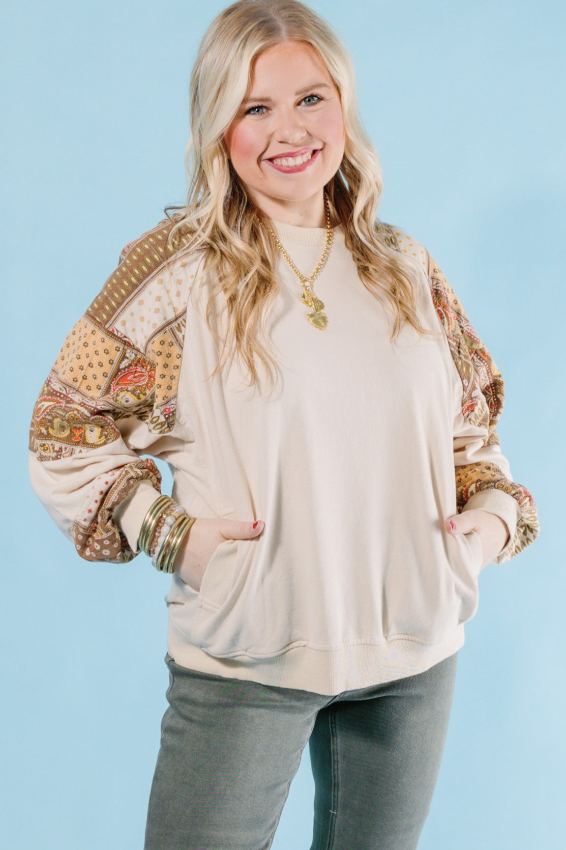 Introducing the Phoenix Pullover! This mineral washed terry knit pullover features a playful mix of paisley patterns, with side pockets for added convenience. The relaxed fit, dropped shoulders, and ribbed band cuffs and hem provide ultimate comfort and style. Perfect for those who don't take themselves too seriously.