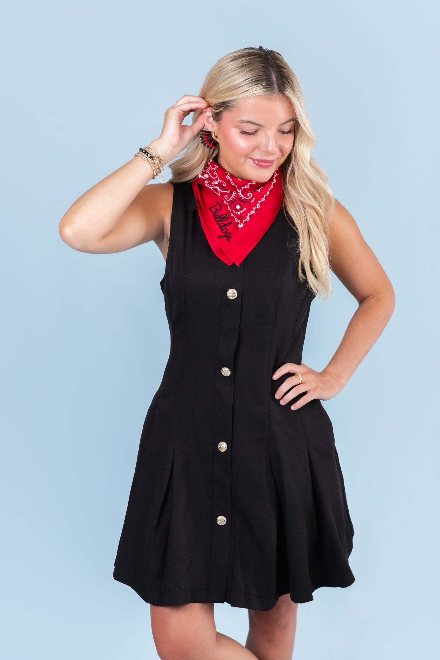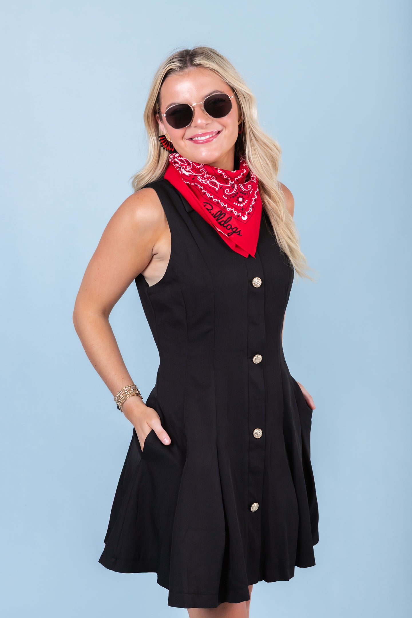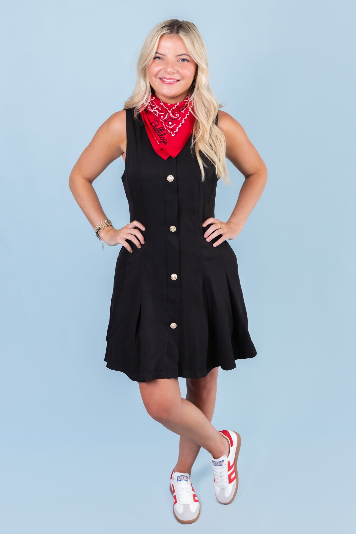 Elevate your style with The Roxford Mini Dress. This solid, sleeveless dress features a pleated design and gold accent shirt collar with button closure. With convenient side pockets and a lightweight, non-sheer construction, this dress is as functional as it is chic. Perfect for any occasion, this lined, woven dress is a must-have for any fashion-forward wardrobe.