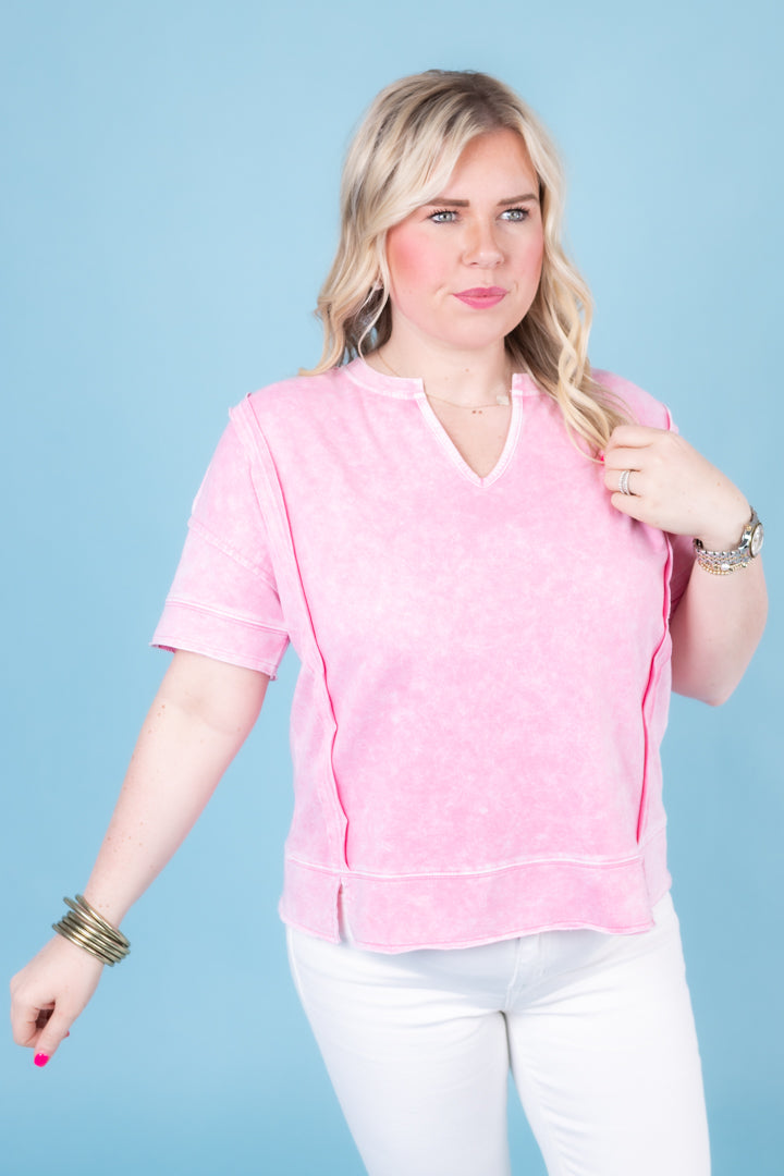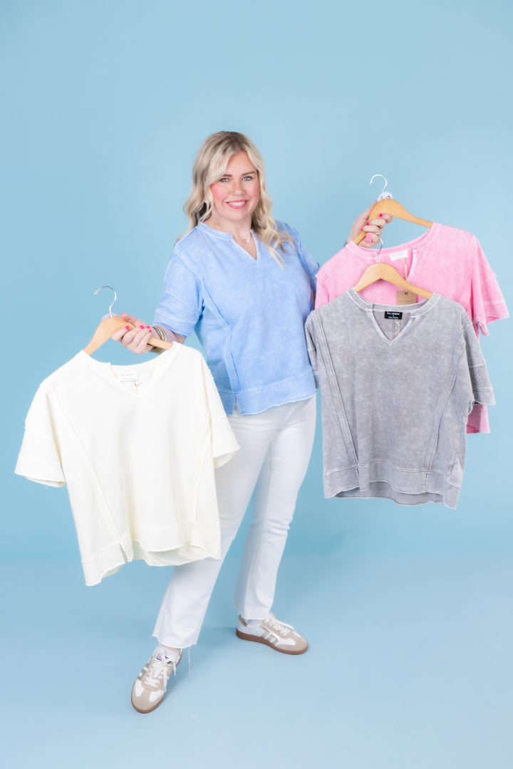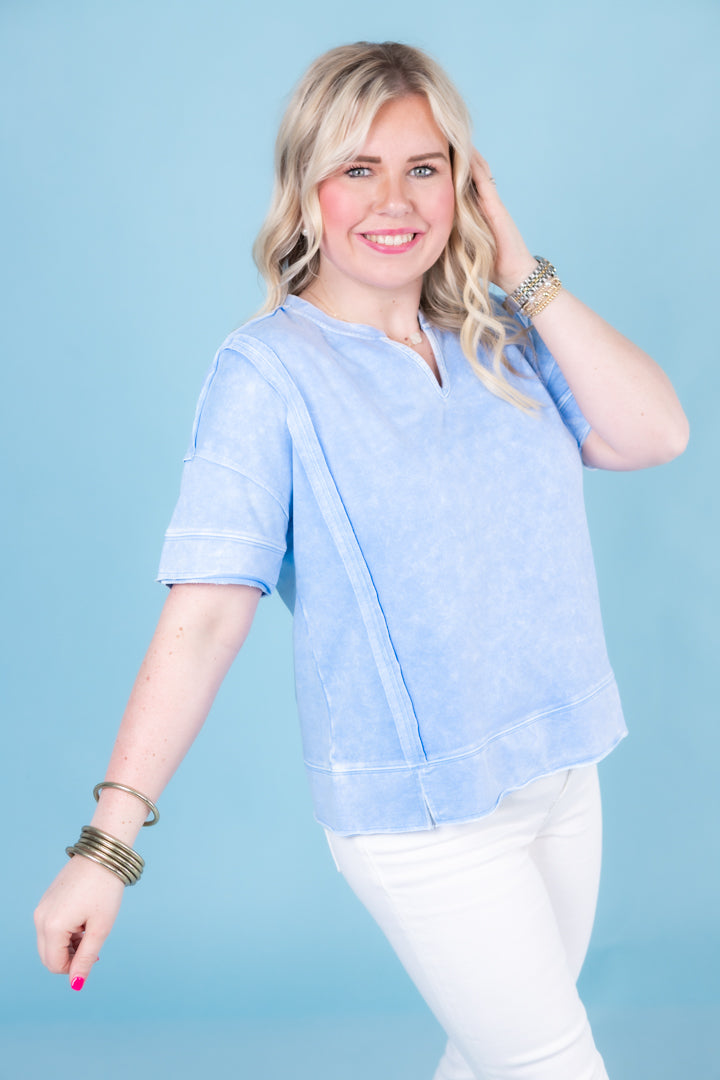 Experience effortless style with The Washed Patchwork Top. Featuring a split neckline and short sleeves, this relaxed fit knit top boasts a unique patchwork detail and a washed pattern for a touch of individuality. Perfect for any casual occasion, this top is not lined for added comfort.