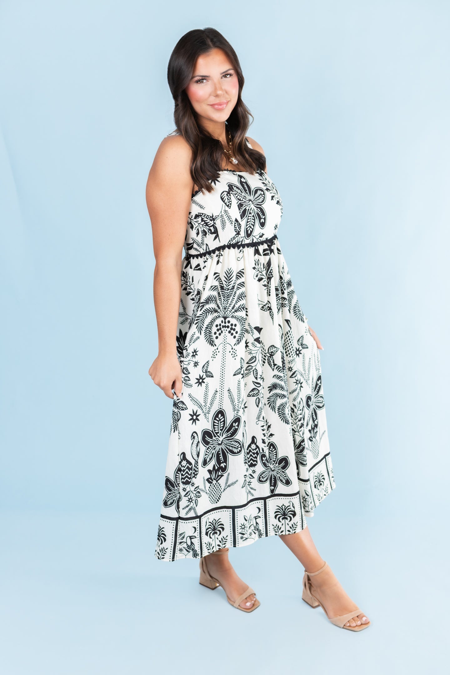 Elevate your style with The Yuma Maxi Dress! This stunning dress features a vibrant abstract border print and intricate trim details, adding a touch of elegance to your wardrobe. Stand out from the crowd and make a statement with this must-have piece.