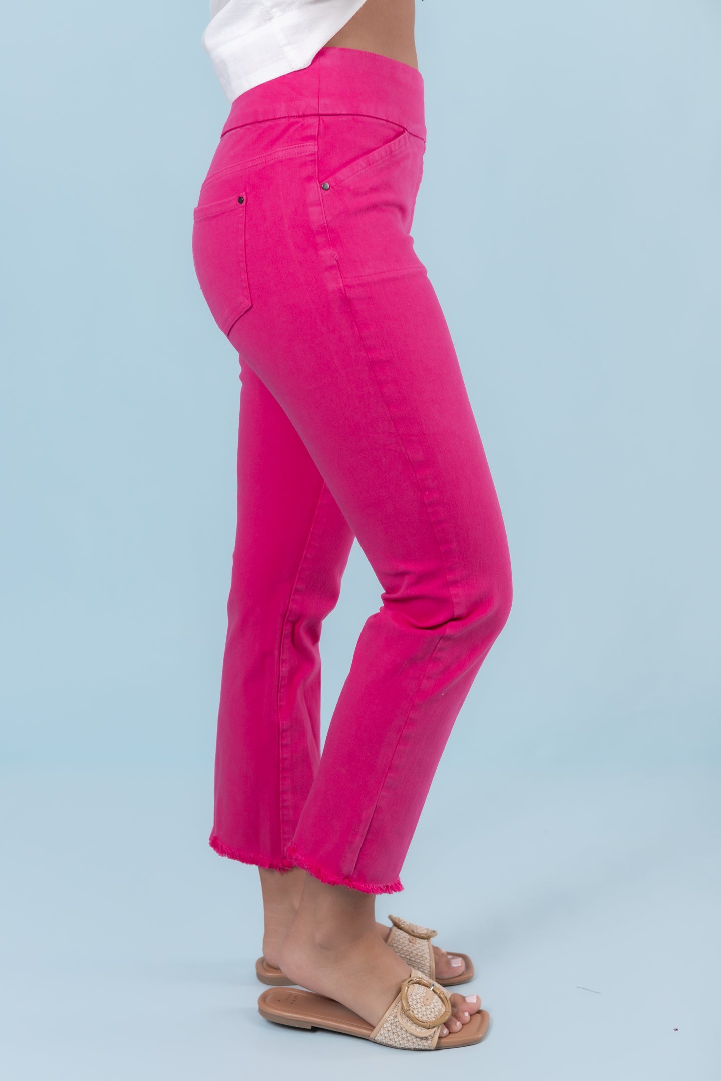 Effortlessly stylish and incredibly comfortable, these 4-Way Stretch Pull-On Jeans are designed for all-day wear. Crafted from a premium blend of cotton, polyester, viscose, and spandex, they offer a flexible fit that moves with you. The pull-on design ensures a smooth silhouette, while the versatile 26-inch inseam and sleek 7-inch leg opening create a flattering look perfect for any occasion.