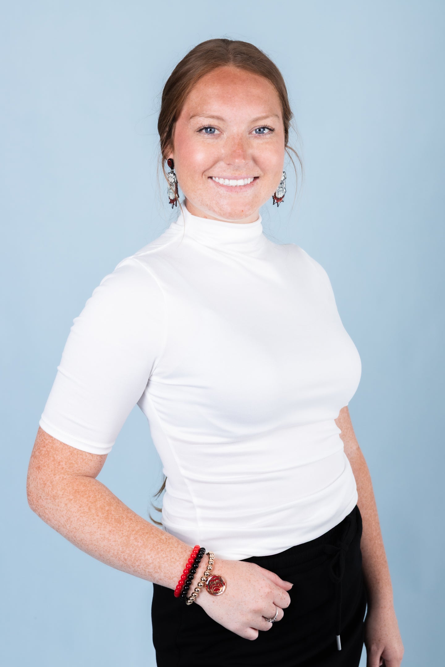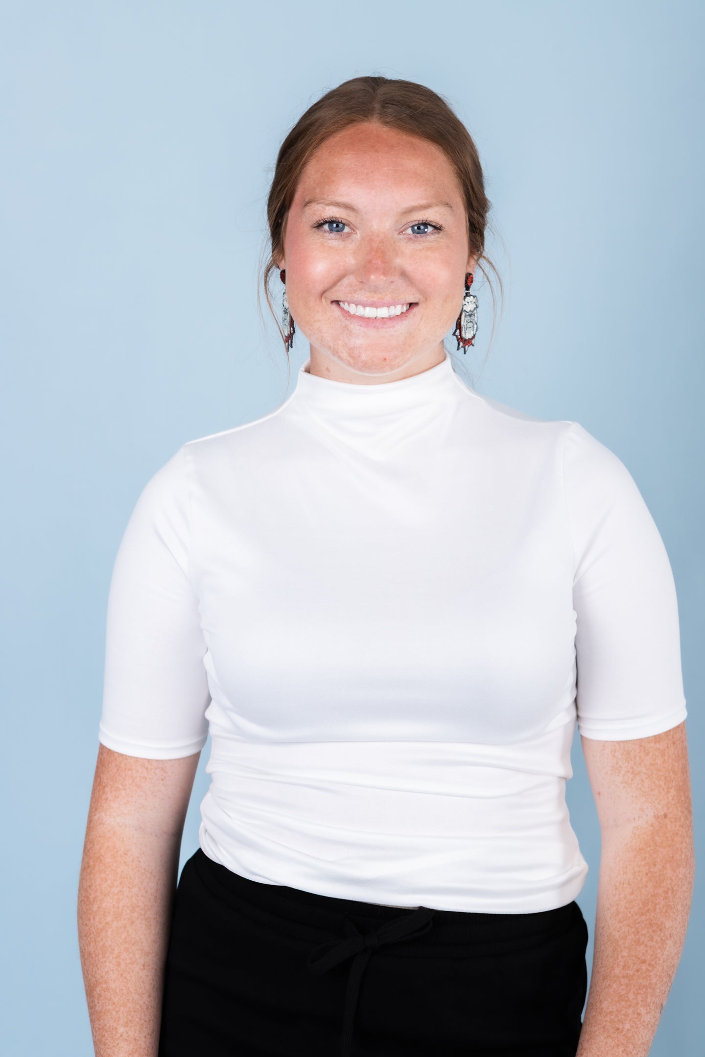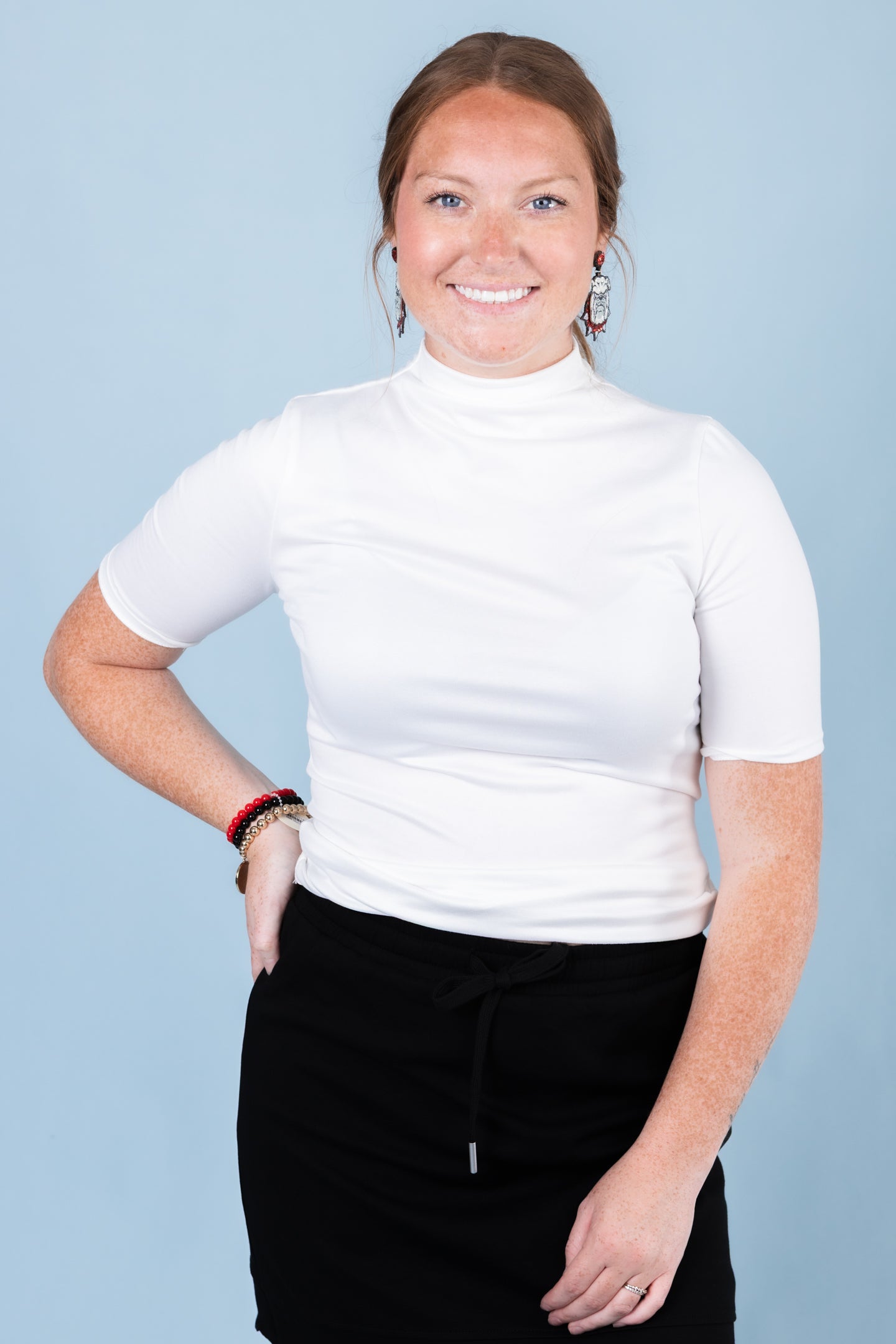Elevate your wardrobe with our fitted, short-sleeve top. Made with a stretchy and smooth fabric, it's perfect for all occasions - from casual to formal. The well-stitched hem and sleeves provide a clean and polished look. Feel comfortable and confident in this versatile piece.