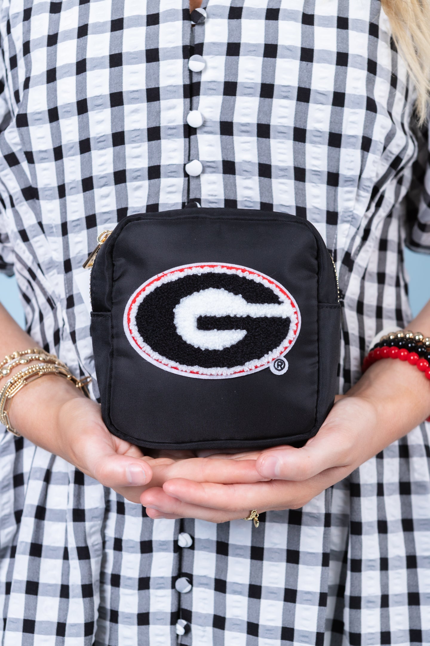 Elevate your organization with the University of Georgia Varsity Patch Pouch, featuring a classic chenille varsity patch on durable nylon. Perfectly sized to keep your essentials secure, it pairs effortlessly with our clear stadium bags and totes or stands alone as a stylish, practical accessory. Add a touch of timeless charm while staying organized wherever you go.